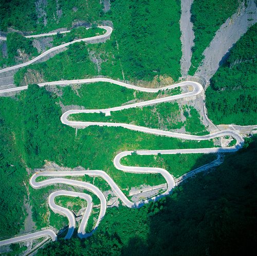 天門山國(guó)家森林公園位于張家界市區(qū)南郊,其核心景點(diǎn)通天大道歷時(shí)8年修建,公路自天門山山門廣場(chǎng)始,至天門洞止,公路共有99個(gè)彎道,180度的彎路環(huán)環(huán)相連、層層迭起,氣勢(shì)雄偉。建設(shè)公路過(guò)程中又為減少植被破壞,整個(gè)工程充滿著艱辛卓絕,以蜿蜒迂回穿行于山體絕壁之天險(xiǎn)而成為天下第一公路奇觀。中國(guó)書法家協(xié)會(huì)名譽(yù)主席沈鵬先生走過(guò)通天大道后欣然為其題字“曲道通天”,字體遒勁挺拔,與通天大道的奇絕天下相融為一體。