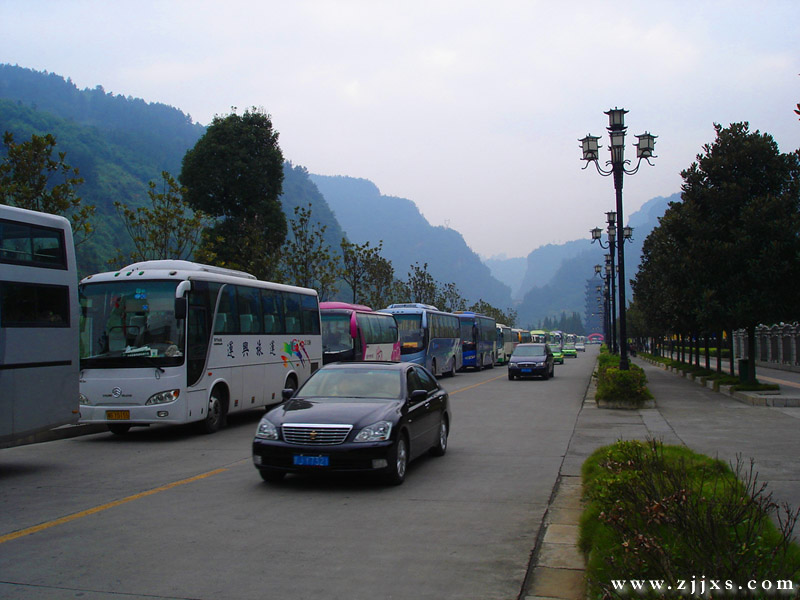 (武陵源大道上自駕車(chē)在交警的指輝下,有序停靠)