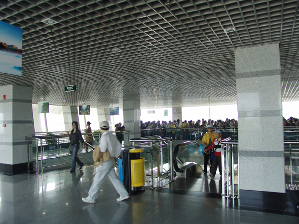 在索道下站,天門山景區(qū)特別組織工作人員現場協調游客排隊等候,并開放了中央空調給游人一個舒適的候車環(huán)境,現場秩序一片井然。