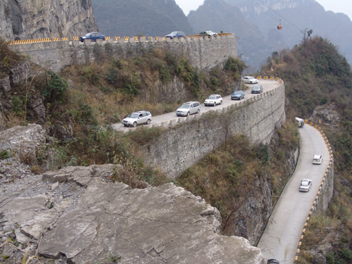 12月6日,來自長(zhǎng)沙金鷹955自駕會(huì)所的50臺(tái)自駕車齊聚天門山天路,舉辦“挑戰(zhàn)通天大道,體驗(yàn)心跳之旅”的自駕活動(dòng)。這是通天大道在2008年度迎來的第六次大型自駕活動(dòng)。