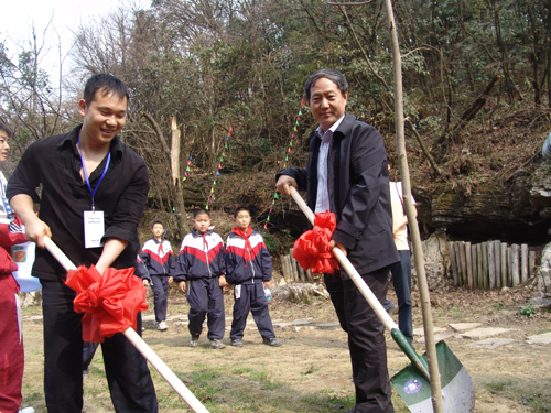 天門(mén)山公司董事長(zhǎng)張同生與奧運(yùn)冠軍樂(lè)茂盛一起為天門(mén)山再添新綠