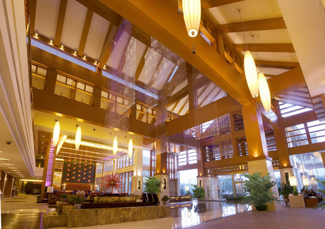 張家界五星級(jí)酒店-武陵源國(guó)際度假酒店是由張家界泰和投資有限公司投資3億余元興建,集湖湘文化、湘西部旅游文化、土家族民俗民風(fēng)演繹于一體的五星級(jí)國(guó)際綜合性度假旅游飯店。酒店總占地面積3.7萬(wàn)平方米,其中建筑用地面積1.1萬(wàn)平方米,酒店總建筑面積4.2萬(wàn)平方米。酒店于2007年03月08日開(kāi)業(yè),功能設(shè)置有豪華山景客房、豪華園景客房、行政樓層、特色套房、豪華總統(tǒng)套房等各類客房總計(jì)455間(套).多個(gè)特色中西餐廳,其中豪華大氣的泰和盛世中餐廳面積680平方米,可同時(shí)容納500人用餐;豪華宴會(huì)廳可容納700人的會(huì)議或用餐;另設(shè)有11間貴賓廂房、咖啡廳、大堂吧、茶室、池畔吧、行政酒廊?刁w娛樂(lè)休閑商務(wù)設(shè)施齊全,商務(wù)中心、桑拿、健身室、游泳池、健康水會(huì)、KTV包房、美容美發(fā)室、網(wǎng)球場(chǎng)、臺(tái)球室、乒乓球室、商店、紀(jì)念品商店等各種服務(wù)項(xiàng)目一應(yīng)俱全。設(shè)有可停180多輛汽車停車場(chǎng),配備了中央空調(diào)、獨(dú)立計(jì)算機(jī)網(wǎng)絡(luò)、背景音樂(lè)、程控電話、閉路電視監(jiān)控、緊急呼救、防火安全等先進(jìn)設(shè)備系統(tǒng),可為中外賓客提供至情至真至美的服務(wù)。