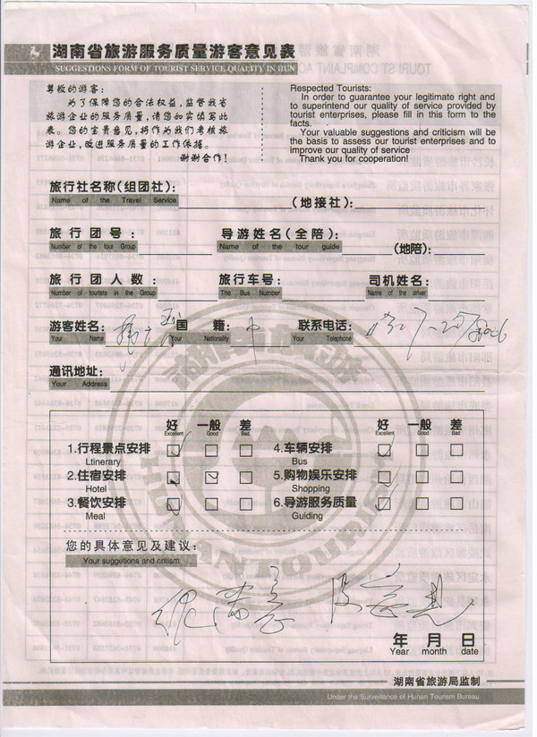 北京韓先生一行8人旅游質量回饋