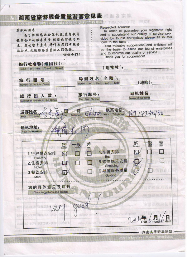 長(zhǎng)沙李志彪一行10人旅游質(zhì)量回饋:VERY GOOD!