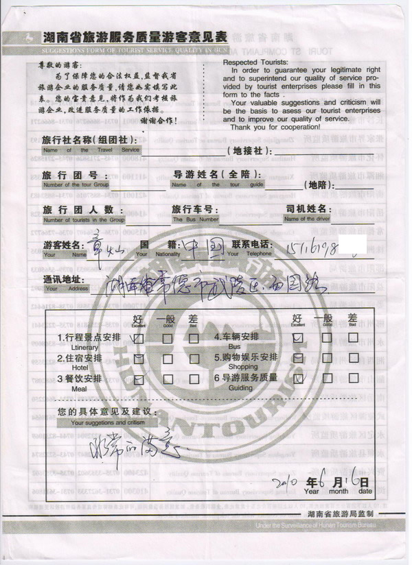 常德章燦一行8人旅游質(zhì)量回饋:非常滿意!