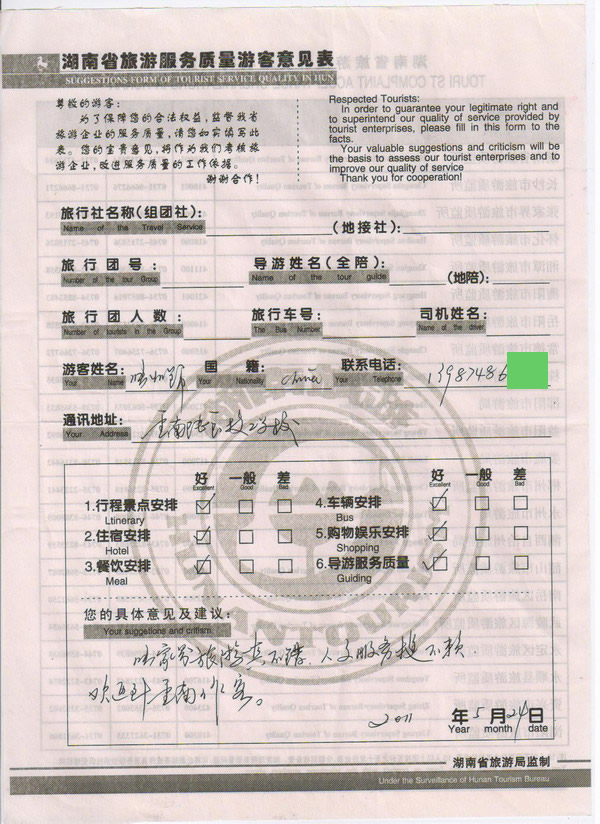 云南張小姐一行18人旅游質(zhì)量回饋:張家界旅游真不錯(cuò),人文服務(wù)挺不賴,歡迎來云南作客!