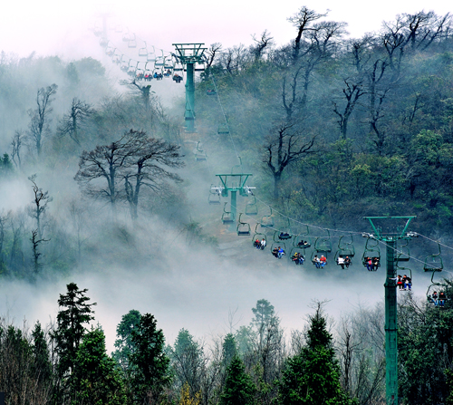 6、山頂森林觀光纜車(chē)—樹(shù)尖驚飛鳥(niǎo),踏云欲成仙: