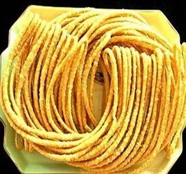 團(tuán)馓俗稱“糯米馓子”,是苗族、土家族、白族和漢族都愛(ài)吃的一種土特產(chǎn)。是將地道的土家糯米蒸熟,倒入一種由特制的木板做底,圍篾做圓圈的模子內(nèi),將熟糯米壓平并用一種農(nóng)家栽種的紫果水或食色素在上面畫(huà)“喜”字等吉祥圖案,等冷卻后取出來(lái),曬干、儲(chǔ)藏。逢年過(guò)節(jié)時(shí)送親友或是招待貴客,吃時(shí)用食物油炸酥,膨脹后比原來(lái)的面積大2~3倍,味道香脆可口。