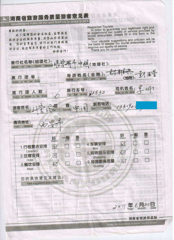 西安劉先生一行6人旅游質(zhì)量回饋