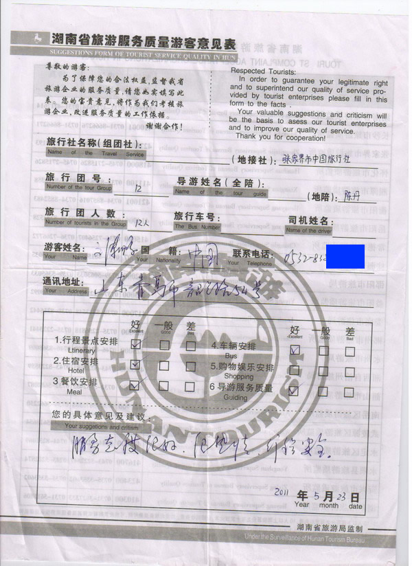 山東劉先生一行12人旅游質(zhì)量回饋: