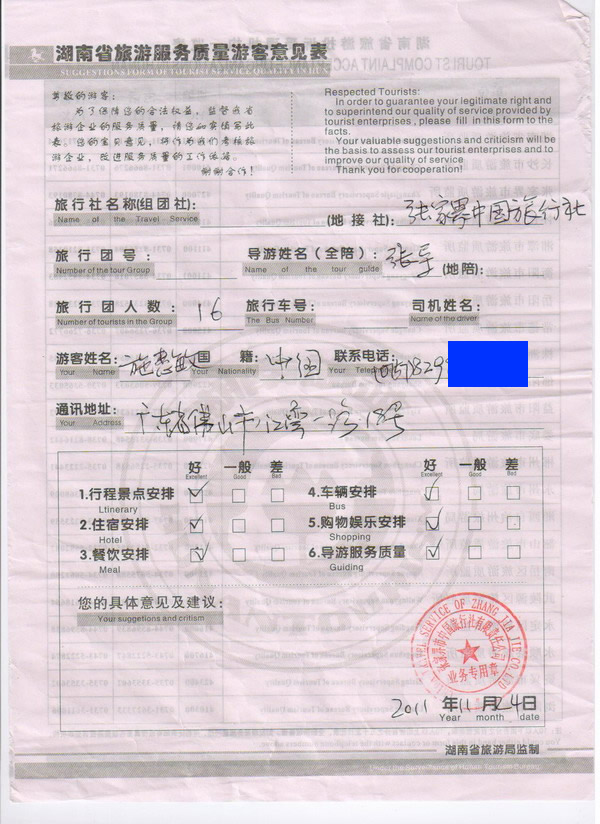 廣東施小姐一行16人旅游質(zhì)量回饋