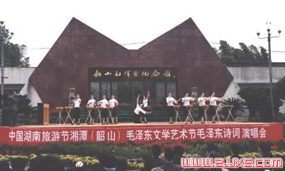 毛澤東紀念園位于毛澤東故居西側約500米的層山疊嶺之上,紀念園最初定名為“毛澤東之路景園”。景園的構思顯然受到了全國許多大城市“世界之窗”微縮景觀的啟示,整座景園只用了一年的時間,在一九九五 年底,占地約二十萬平方米,大小建筑近百處,集紀念、教育、游覽等多種功能于一體的景園便展現(xiàn)于世人面前。