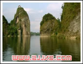 8 水心砥柱: 即水心巖。兩峰并秀,屹立江中。