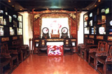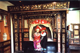 【中堂講解】現(xiàn)在您所走進的是傳統(tǒng)土家建筑的第一間房子,我們稱之為中堂或者堂屋。堂屋是個莊重.講禮的地方,祭祀,婚葬嫁娶一類的大事都要在這兒興行。堂屋正中是神龕,一般土家都得供奉相當(dāng)豪華精致的神龕,最上面雕的是二龍戲珠,兩邊是丹鳳朝陽,中間是福壽祿三星高照,土家人早晚都在這里朝拜。湘西土家人是多神論的,雖然沒有自己正式的宗教,但是有一定雛形的由巫師主持的原紿教——土老司。土家的土老司為”梯瑪“。做土老司的主要內(nèi)容就是祭祀土王,敬奉土家祖先。如果您有興趣,也可以在這兒 下您的心愿,接受土家神靈的庇護,拜上拜一拜,保您心想事成同,健康長壽。
