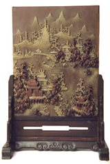 【鎮(zhèn)館之寶——五彩石雕講解】這是一塊用天然五彩石雕雕刻而成的一幅明代晚期的作品,反映的是宋代人日常生活的一幅“漁樵耕讀圖”。其中可見漁夫在水中撒網(wǎng),樵夫在山中伐木,橋面上有牧童牽牛,窗臺上可見書生捧書,作者根據(jù)五彩石的自然顏色,布局精純,雕鏤細微,一尺之中包羅萬象,F(xiàn)在經(jīng)故宮愽物院的專家反復(fù)考證,認為這塊五彩石雕具有極高的收藏價值,受到了包括沈從文.黃永玉 等大師的高度贊譽,被譽為秀華山館的“鎮(zhèn)館之寶”。 |