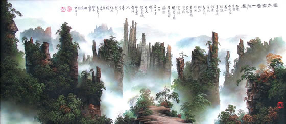李軍聲創(chuàng)造的砂石畫,大膽突破傳統(tǒng)繪畫用材,利用自然植物的色相創(chuàng)造性地衷用自然,極具藝術(shù)價值與收藏。他說過:“一件精美的藝術(shù)品不受材料和技巧的束縛,而取決于創(chuàng)作者的心靈感悟”。軍聲畫院和軍聲砂石畫就是這樣一處閃爍在張家界自美景中的,獨具藝術(shù)魅力的人文景觀。