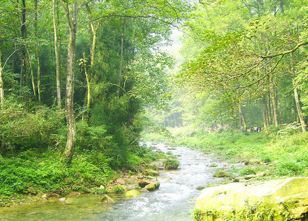 那么金鞭溪究竟美在哪里呢?慢慢往下看吧!金鞭溪全長大約7.5千米,沿途有著名景點:閨門巖、觀音送子、金鞭巖、神鷹護鞭、醉羅漢、師徒取經(jīng)、劈山救母、長壽泉、文星巖、雙龜探溪、秀才藏書、豬八戒背媳婦、紫草潭、千里相會、跳魚潭、重歡樹、駱駝峰、水繞四門等等。而且在這里有著清新的空氣,曾經(jīng)有一個外國人把這里的負離子作了一個比喻,他說把這里一立方厘米的負離子變成錢的話,可以值很多美圓呢!所以,朋友們要是嫌張家界248的門票貴了的話,你不防多吸幾口,把錢給賺回去。要是你還怕賺不回的話,沒關系,你用個干凈的塑料袋多裝點兒,帶回去了再吸,比你在市場上買的氧力得要好多了哦!純天然無污染的呢!只是金鞭溪最美麗也最精華的是前半程(也就是金鞭溪的起點到千里相會處),那在這里肯定就還有個后半程(也就是千里相會到水繞四門了)。